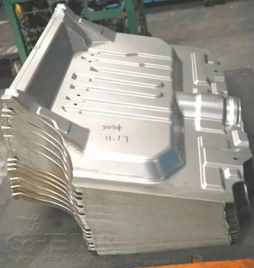 3.壓制好的前翼子板,整齊放在成品區(qū)待用。壓制成型的車輛側(cè)車身。